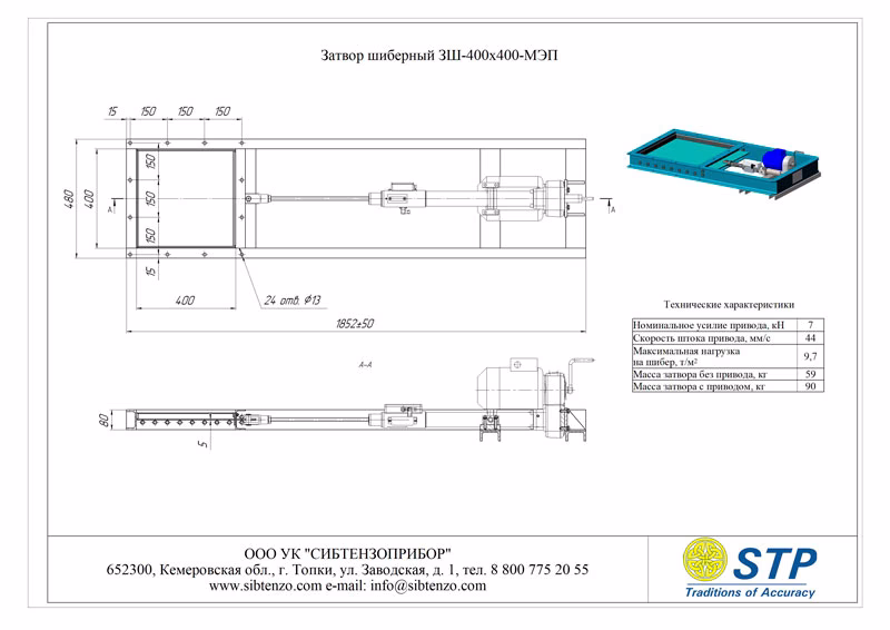 Затвор шиберный 3Ш-400х400-МЭП выполняет функцию регулирования либо полной блокировки потока веществ. Отличительной особенностью устройства является использование металлического ножа (пластины) в качестве запорного элемента.